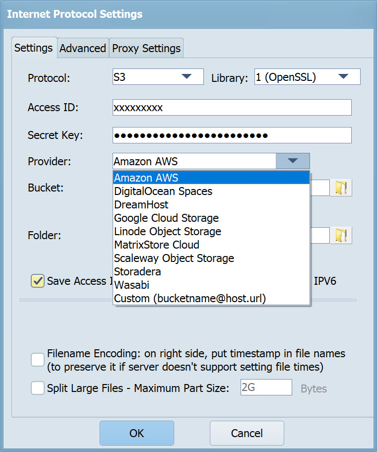 Syncovery prend en charge divers fournisseurs de stockage compatible S3.