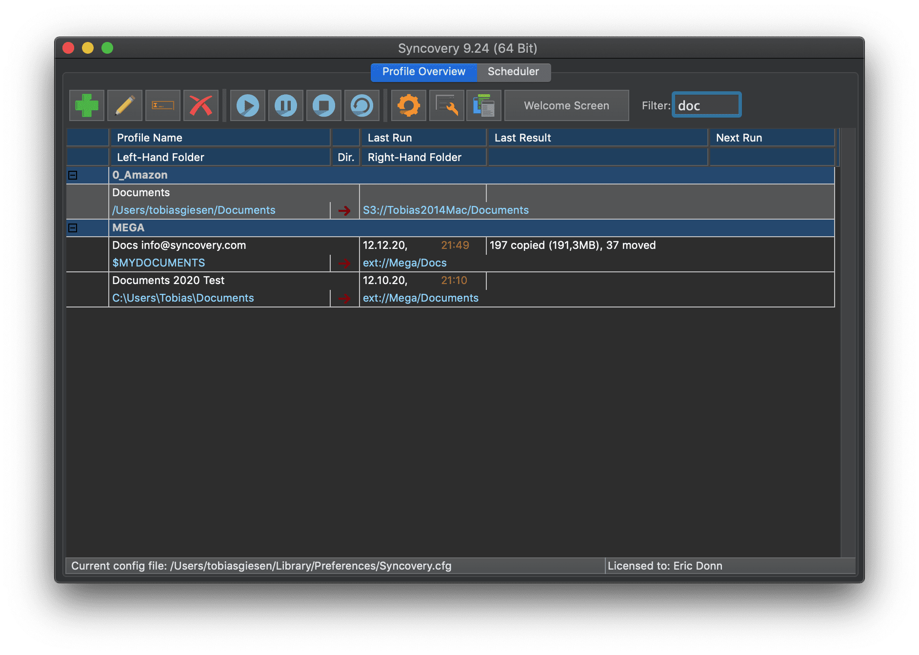 Comme vous pouvez le voir sur les captures d’écran ci-dessous, Syncovery prend également entièrement en charge le Mode sombre de macOS et le stockage cloud MEGA :